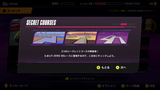 シークレットコースは「F-ZERO 99」「ミニグランプリ」にときどき出現。